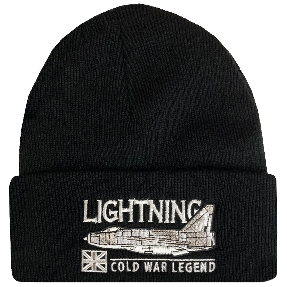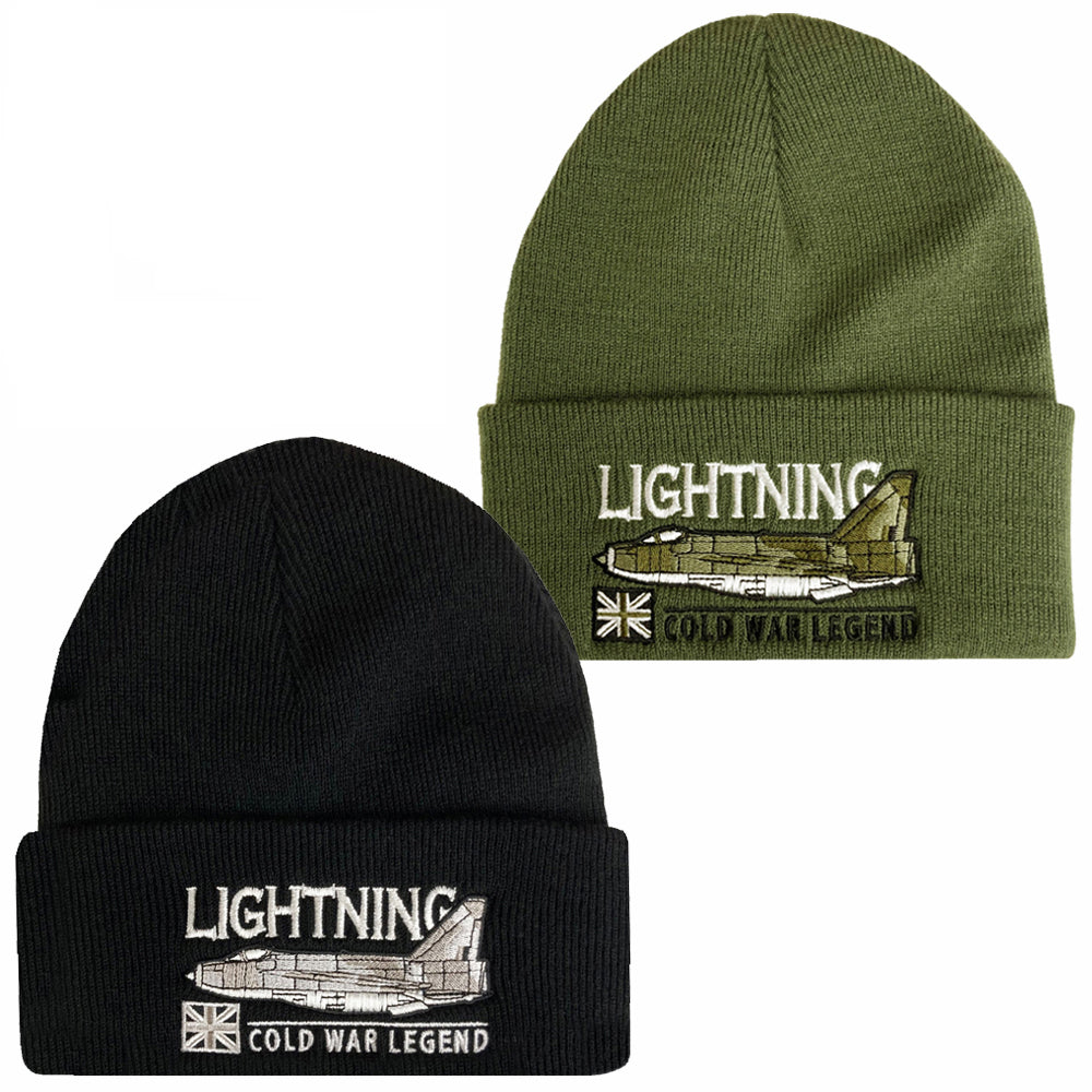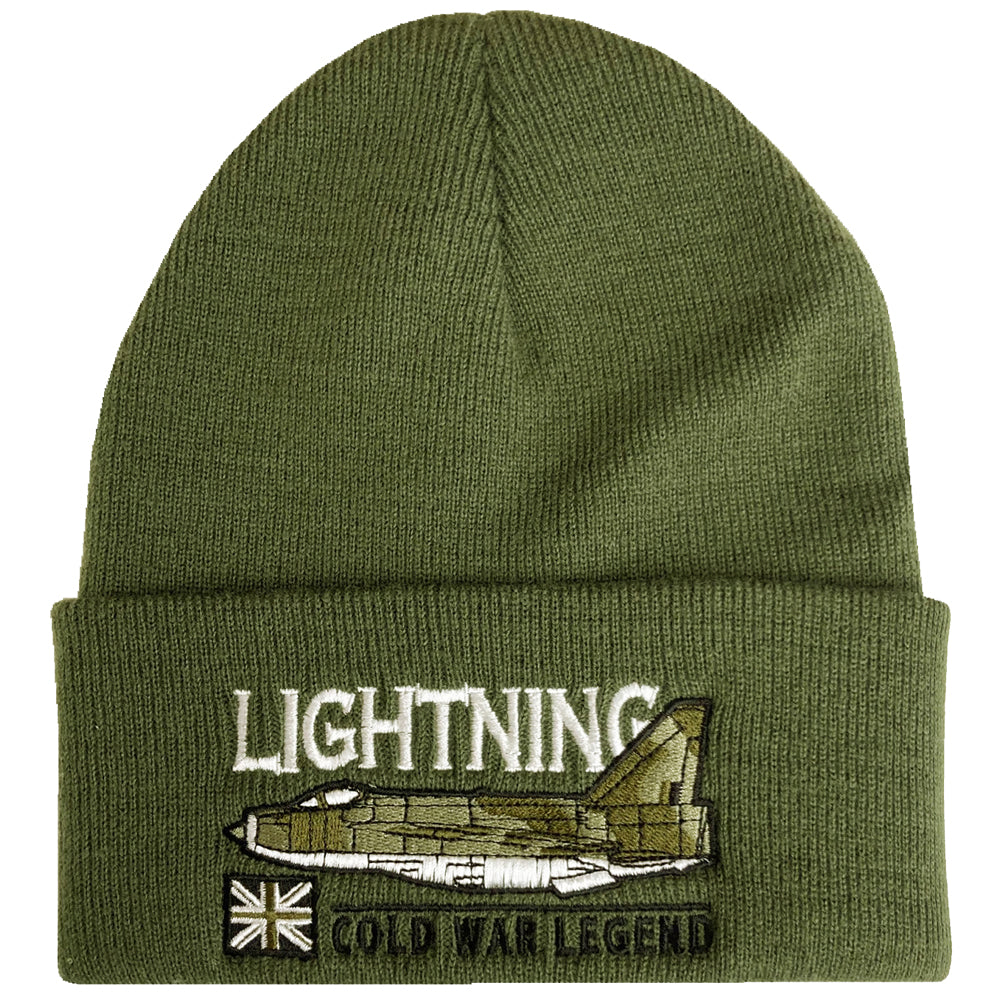 BACs English Electric Lightning RAF Interceptor Aircraft Embroidered Black Green Beanie Hat