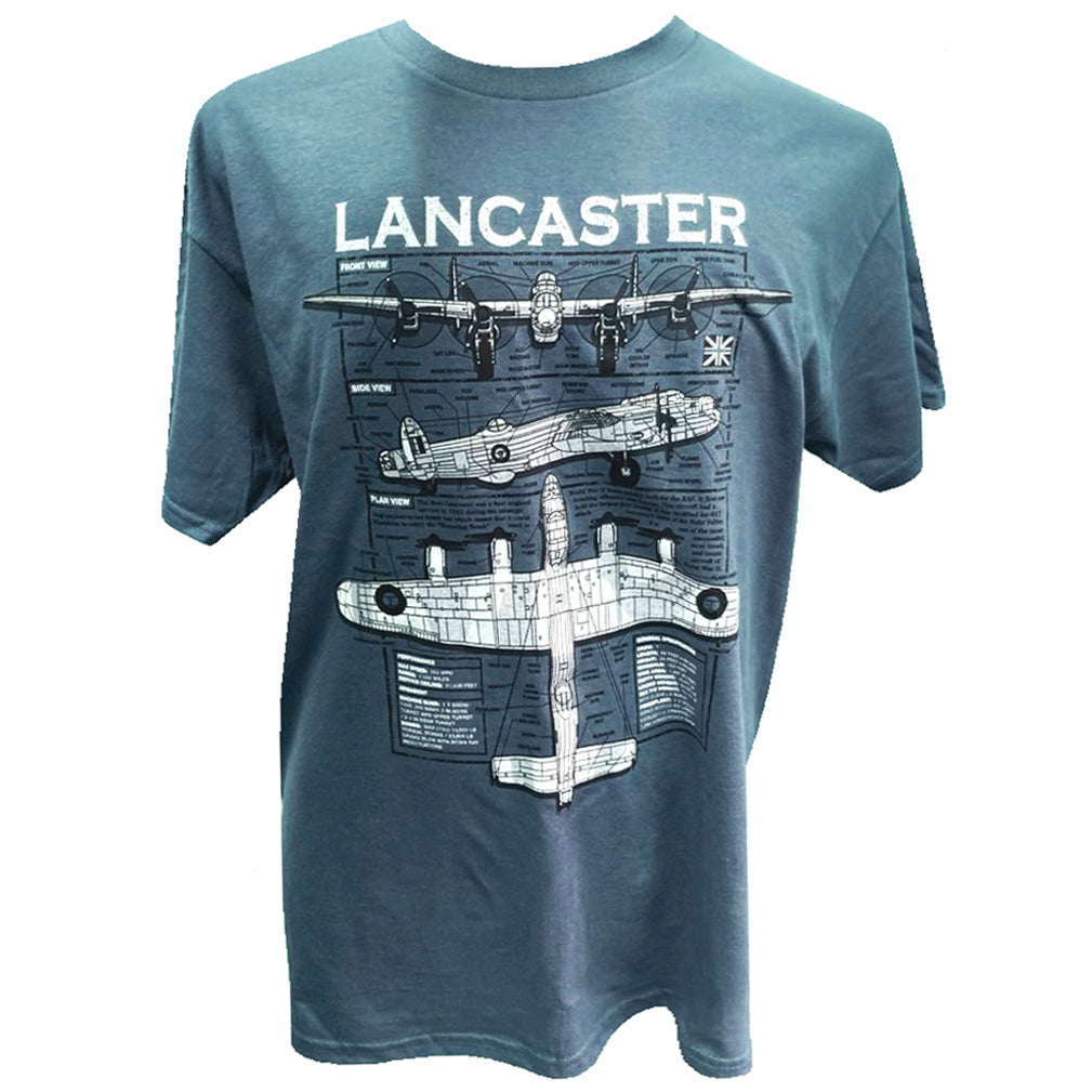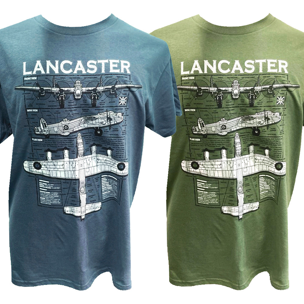 Unique military themed blueprint design Of the Avro Lancaster WWll RAF, RCAF, RAAF heavy bomber aircraft t-shirt.