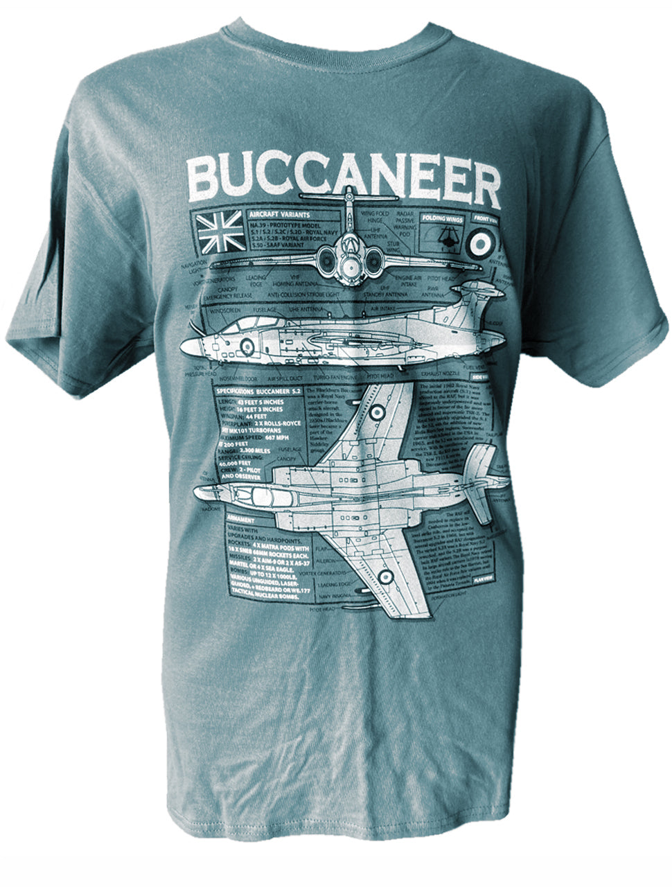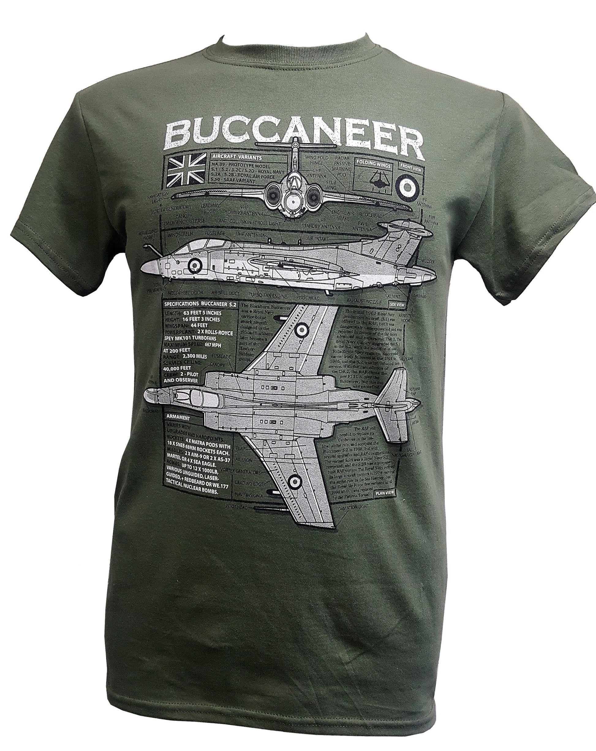 Unique military themed blueprint design Blackburn Buccaneer RAF/Royal Navy fighter aircraft t-shirt.