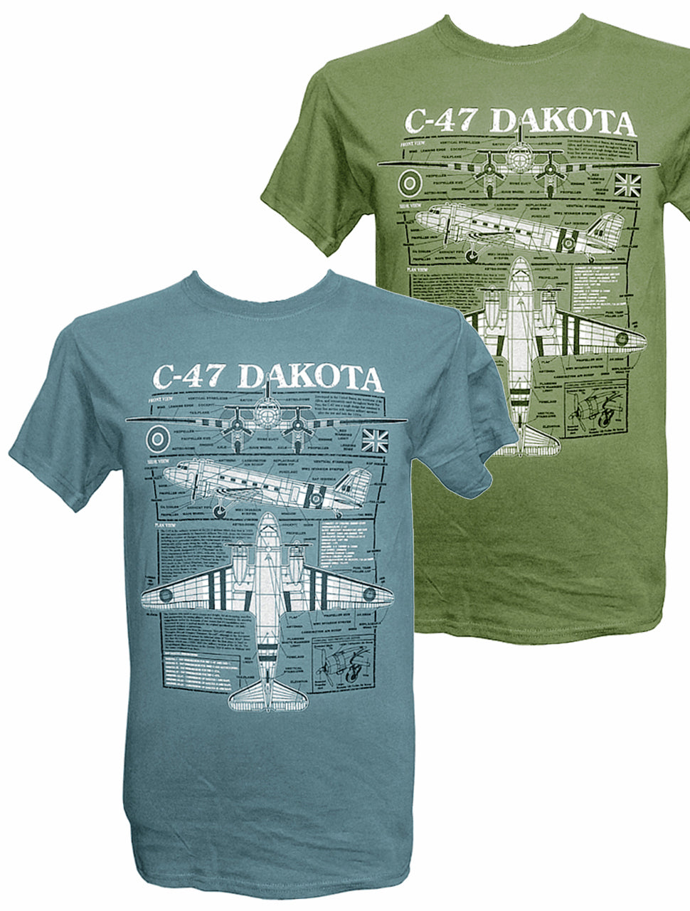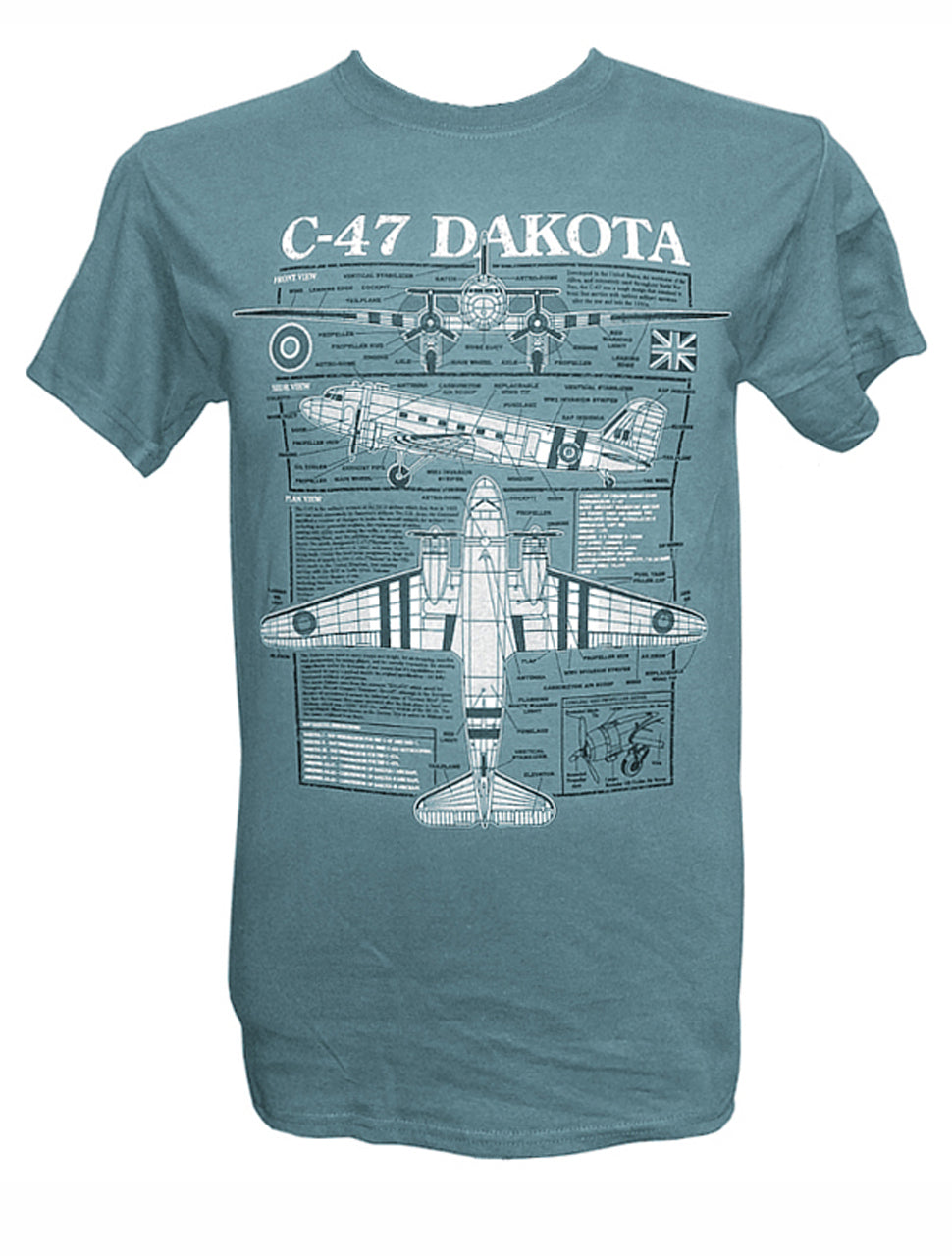 Douglas DC 3 Dakota C-47 USAF RAF WW2 Transporter Troop Carrier Skytrain Blueprint Design T Shirt