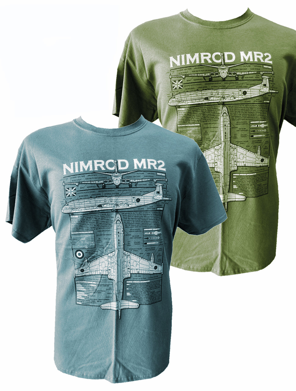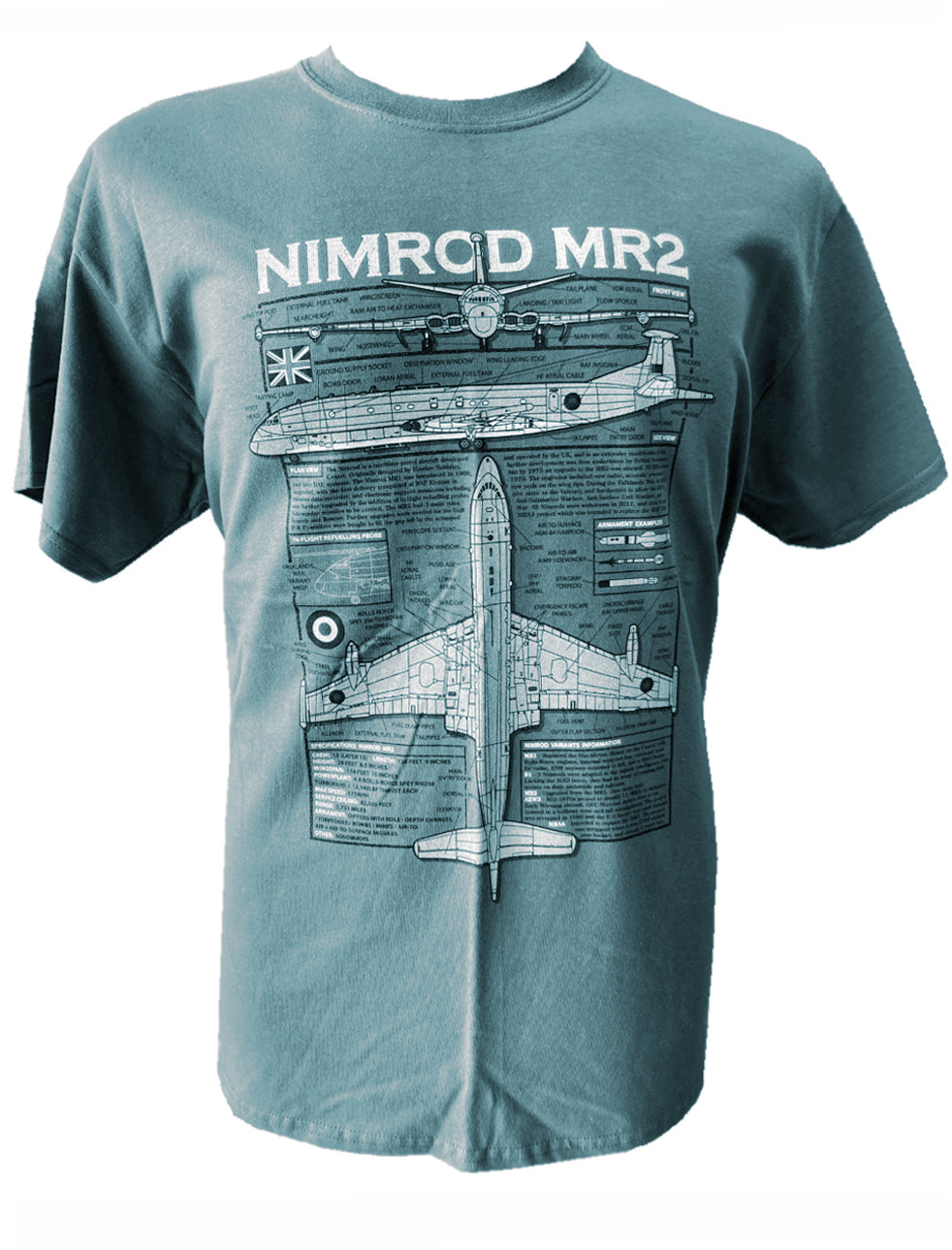 Unique military themed blueprint design Hawker Siddeley Nimrod RAF Maritime Patrol/Anti-Submarine Warfare aircraft t-shirt.