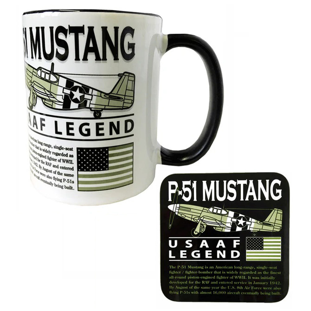 North American Aviation P-51 Mustang USAA/RAF/RNZAF/RCAF WW2 Fighter-Bomber Aircraft Mug & Coaster.