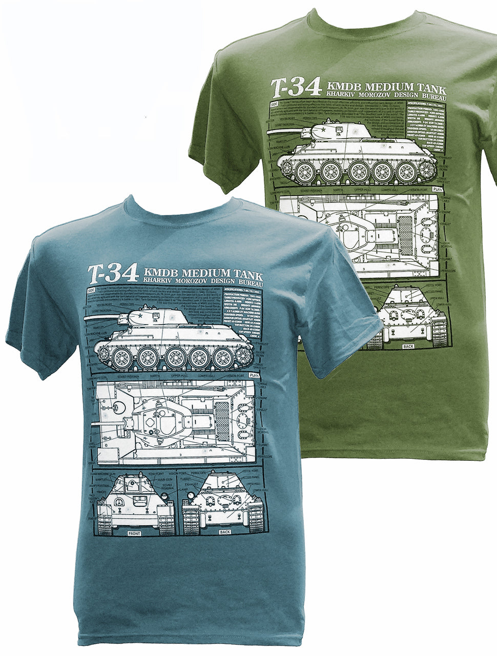 Unique military themed blueprint design Soviet T-34 WWll Medium Tank t-shirt.