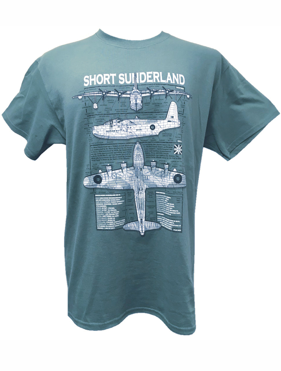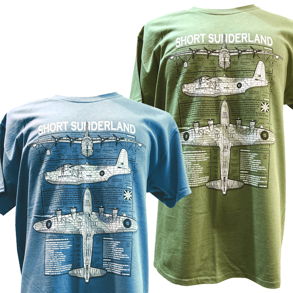 Unique military themed blueprint design Short S.25 Sunderland RAF, FRENCH NAVY, RAAF, SAAF, RNZAF Flying Boat t-shirt.