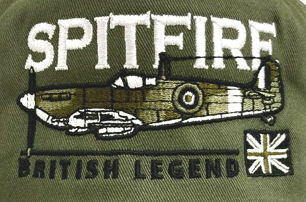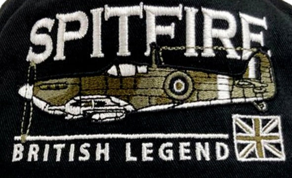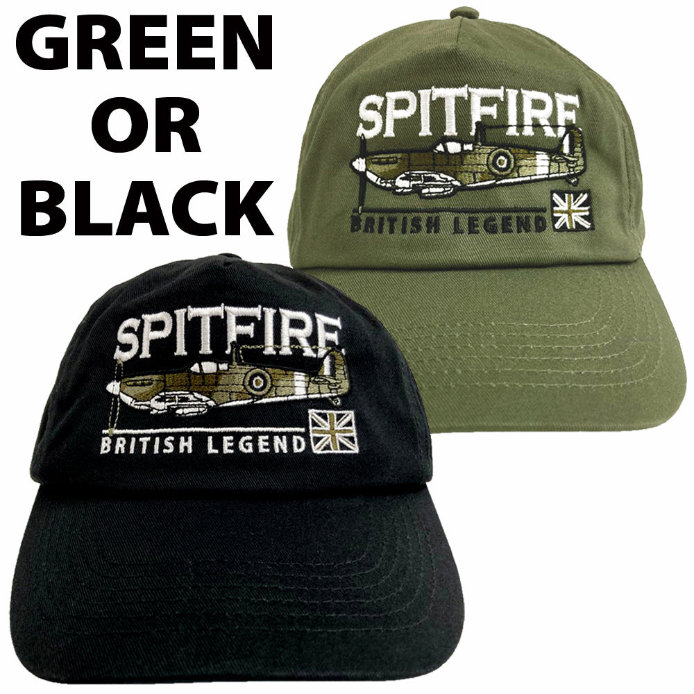Supermarine Spitfire RAF WW11 Battle Of Britain Fighter Aircraft Embroidered Black Green Adjustable Baseball Cap