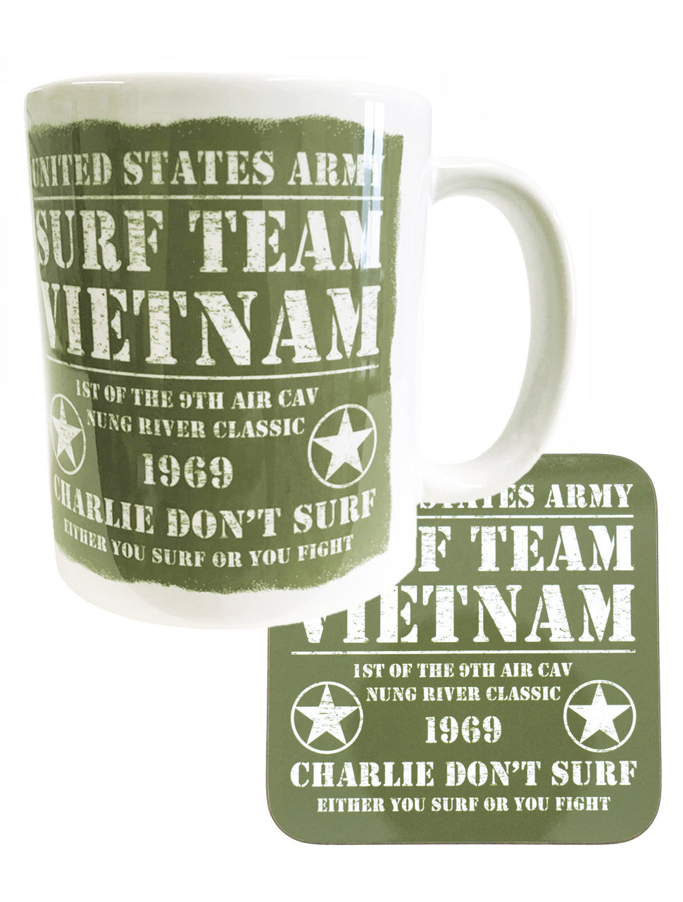 Surf Team' Charlie Don't Surf' US Army Vietnam War Mug & Coaster.
