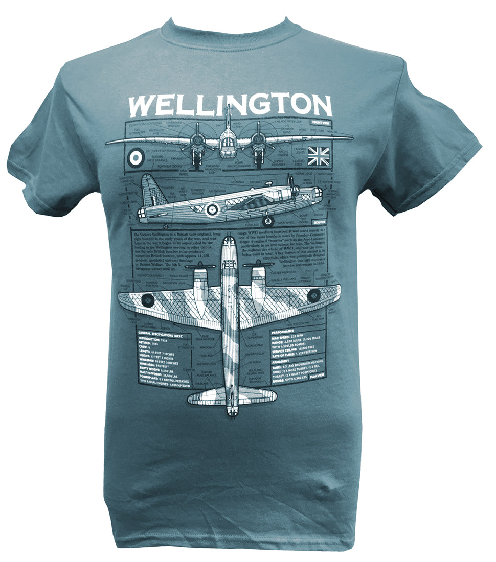 Unique military themed blueprint design Vickers Wellington RAF, RAAR, RCAF, FAA, WWll Medium 2 Engine Bomber Aircraft T-shirt.